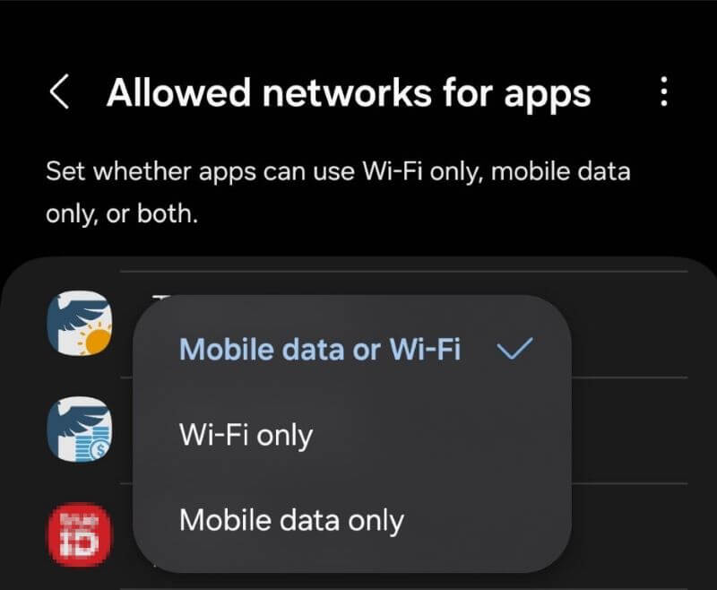 - Android: ไปที่การตั้งค่า (Settings) > การเชื่อมต่อ (Connections) > การใช้งานข้อมูล (Data usage) > เครือข่ายที่อนุญาตสำหรับแอป (Allowed networks for apps) ตรวจสอบให้แน่ใจว่าแอปพลิเคชัน Totem ได้รับอนุญาตให้ใช้ข้อมูลเครือข่าย